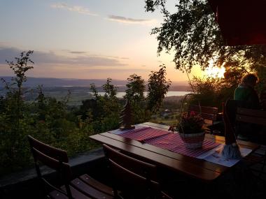 genossen im bekannten Ausflugsrestaurant «Rosinli» in Adetswil mit der wunderbaren Aussicht auf den Pfäffikersee und bis hin in die Alpen die Gespräche in der gemeinsamen Runde.